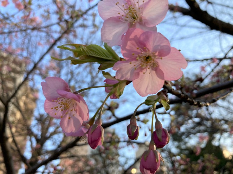 帰り道に公園で、河津桜(たぶん)が咲いていました。