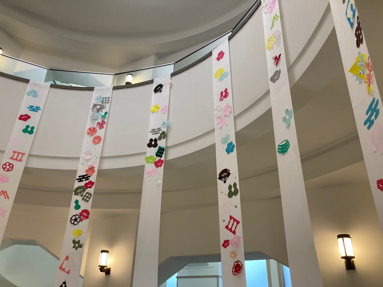 少しづつ皆さんが切ったもんきりを展示に加えて冬から春へ移ろう季節を展示します。