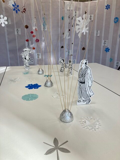 少しづつ皆さんが切ったもんきりを展示に加えて冬から春へ移ろう季節を展示します。