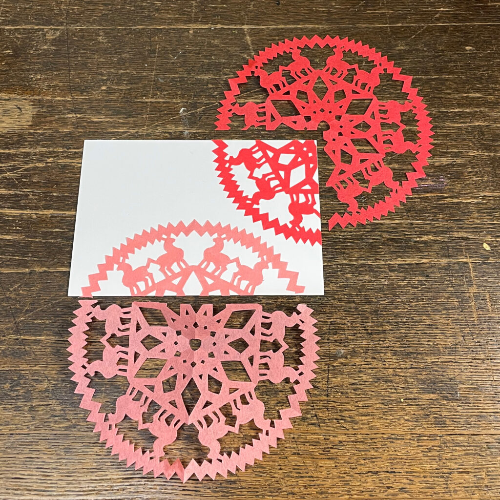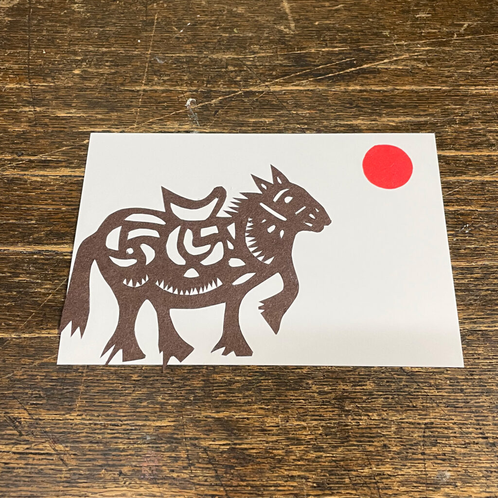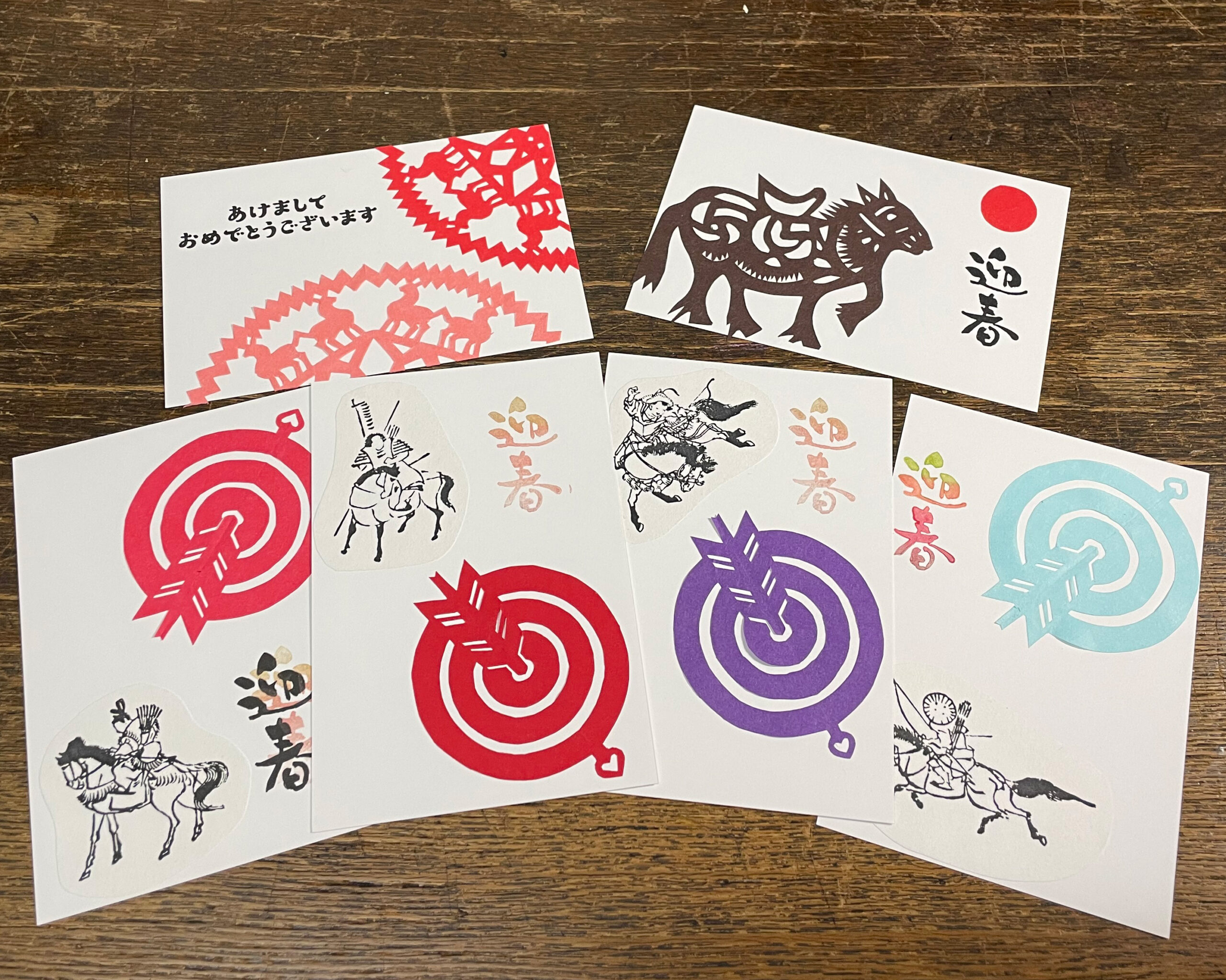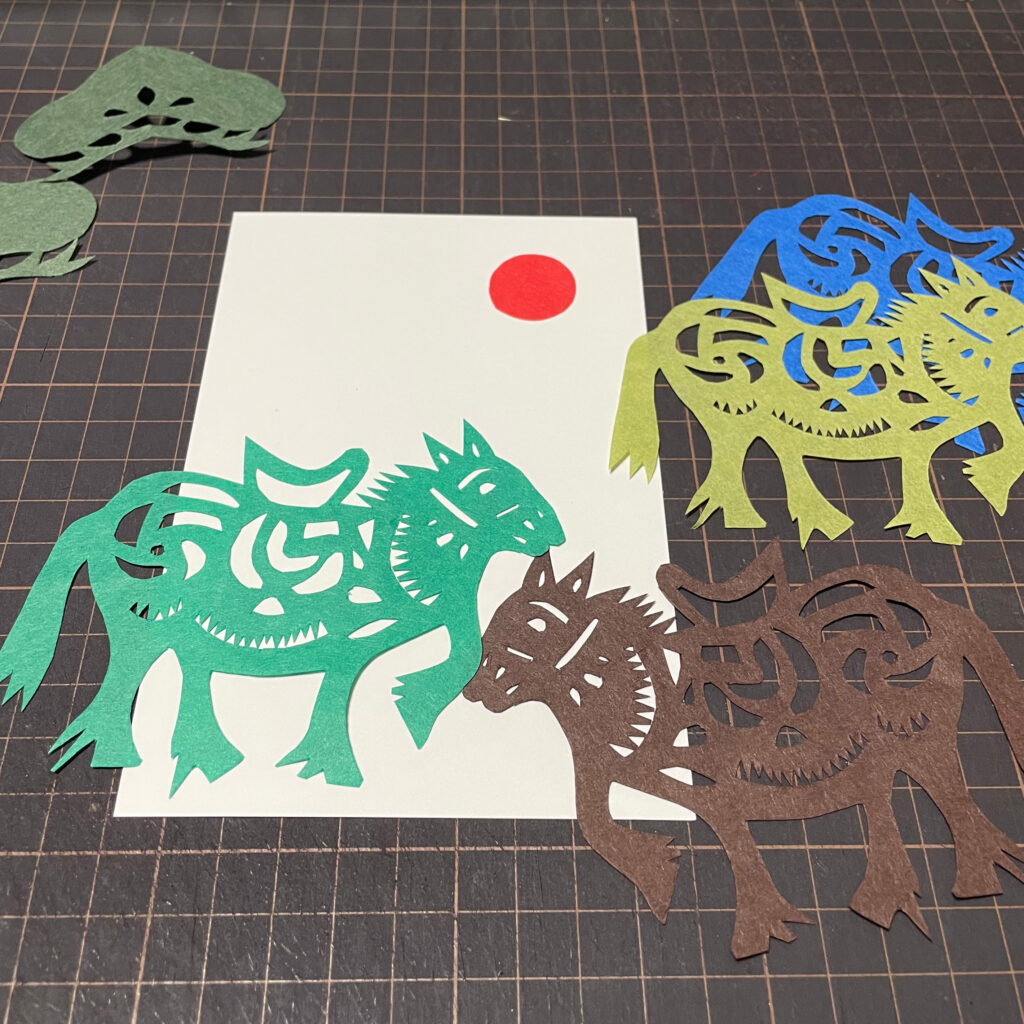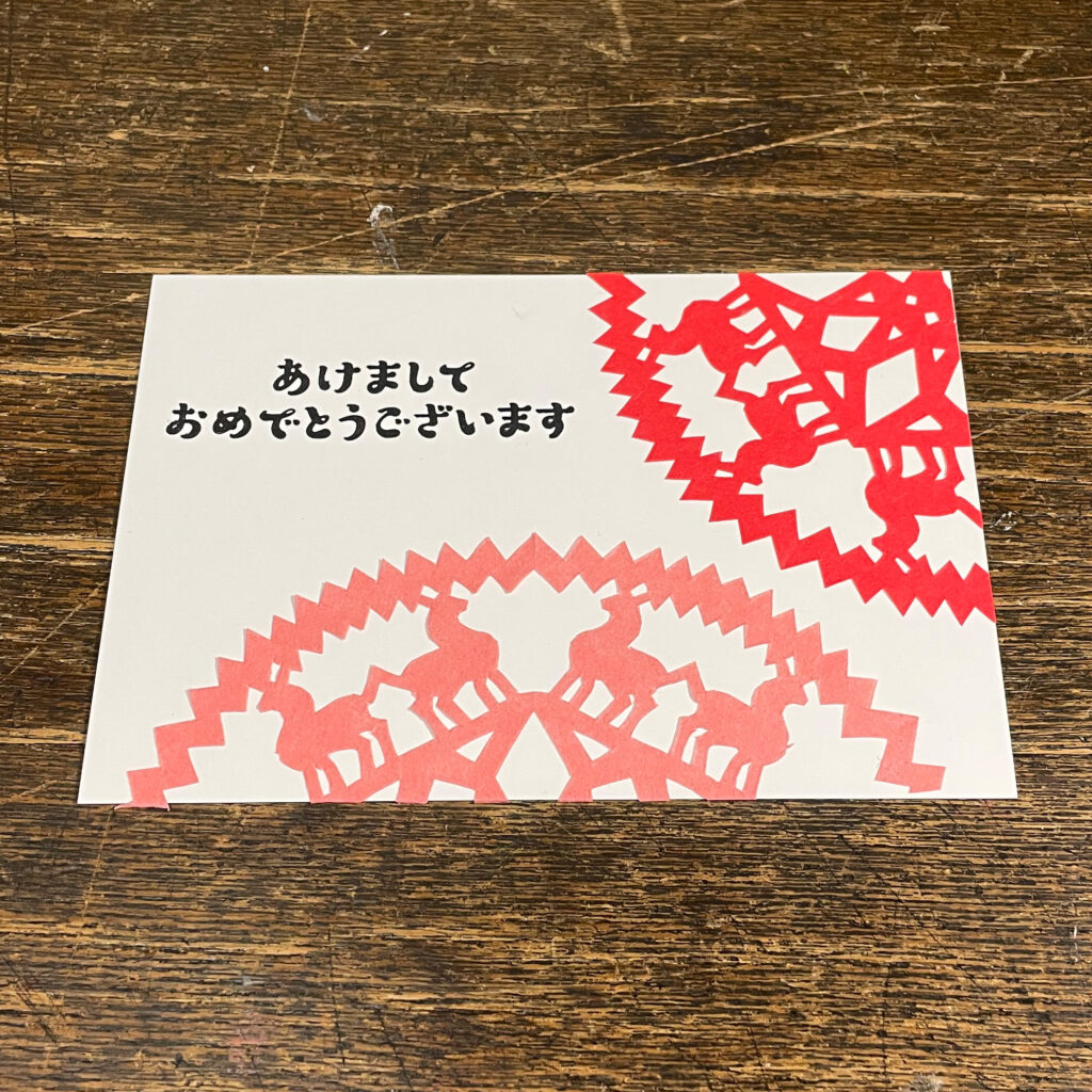 紙を何枚か重ねて切って大量生産。年賀状やグリーティングカードにもオススメです。
