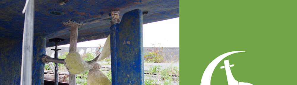 漁港を歩いていたら、何隻かの漁船が修理のために陸に上がっていた。剝げたペンキ、船底の傷跡、こびりついた貝。普段は見えない所でどれだけ過酷に戦っていたか…と思う。その姿はなんとも美しい。舵はもともとは舟の櫓につけられていた、方向を決める道具だ。「物事を決する」尊い存在として、舵が紋章になったものと思われる。