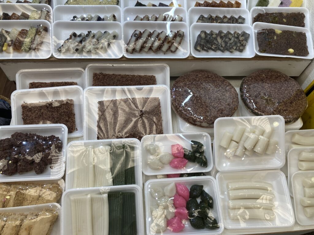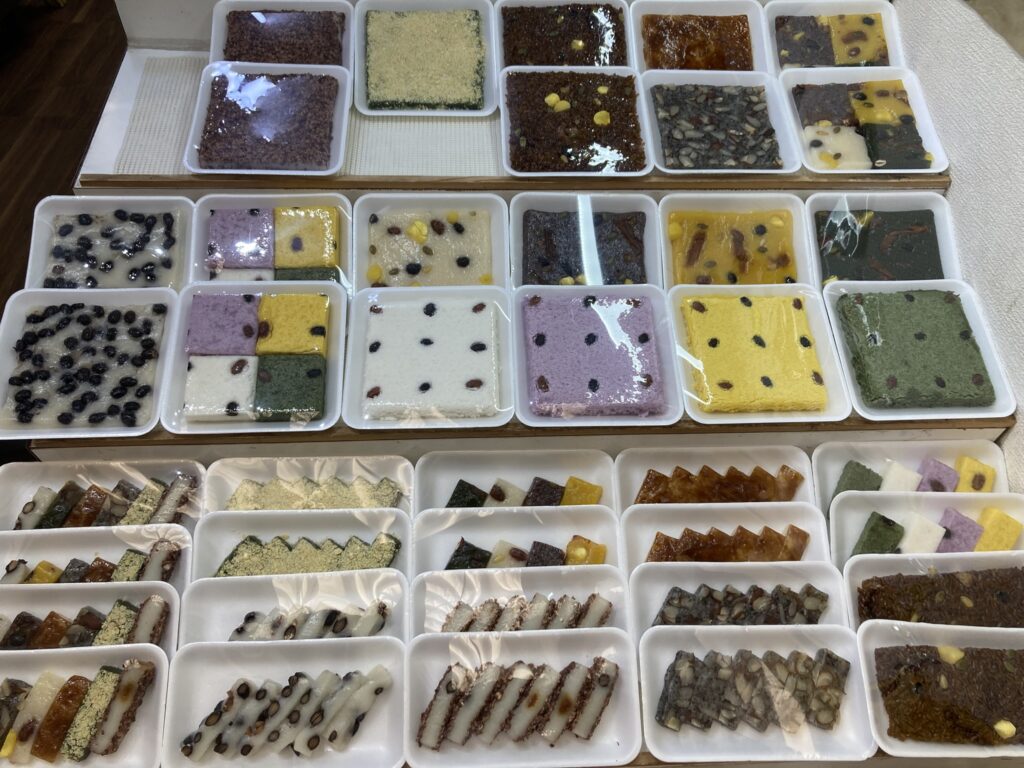 韓国の形 投稿日時: 2025年10月23日 投稿者: エクスプランテ 大阪の鶴橋商店街の中の菓子屋さん。なんと美しい餅菓子!それも、この整然としたなタイルのような形はお国柄だなあ。同じ餅菓子でも、和菓子とはちょっと違った美学。