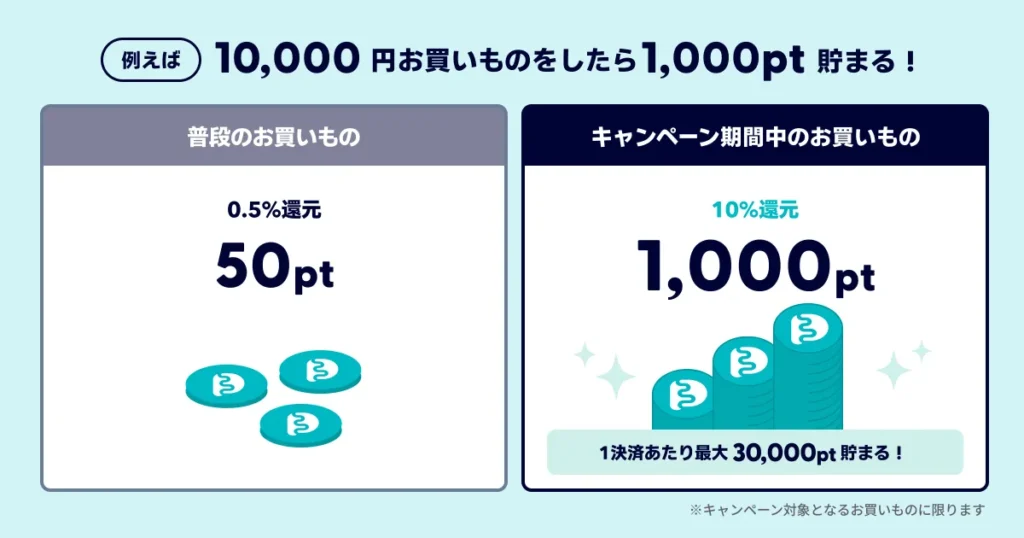 1.「Pay ID ポイント」を10%(上限:1決済あたり30,000ポイント)還元