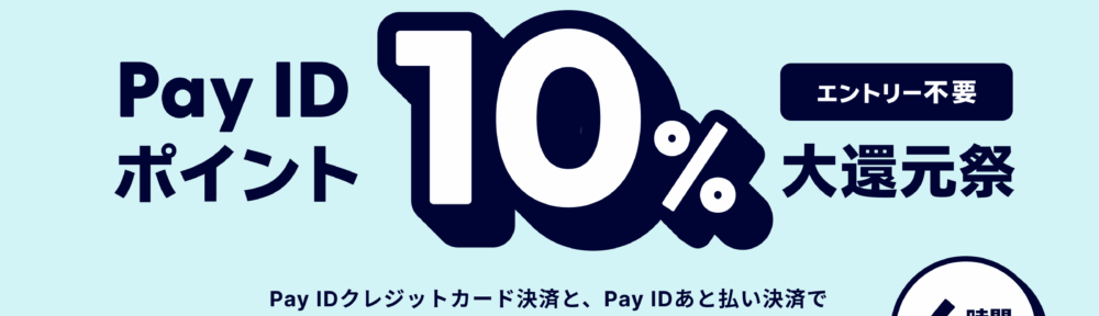 - 「Pay ID ポイント」10%還元(上限:1決済あたり30,000ポイント)