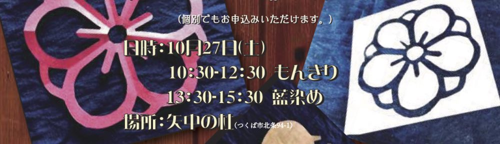 茨城県つくば市にあります「矢中の杜」では、筑波山麓地域全体での秋のお祭り「筑波山麓秋祭り2018」(10月20日(土)~11月4日(日)の各土日がメイン)開催にあわせ、もんきりと藍染のコラボレーションワークショップを行い … 続きを読む 「もんきり+藍染ワークショップ」 茨城つくば市・矢中の杜 2018年10月27日(土)