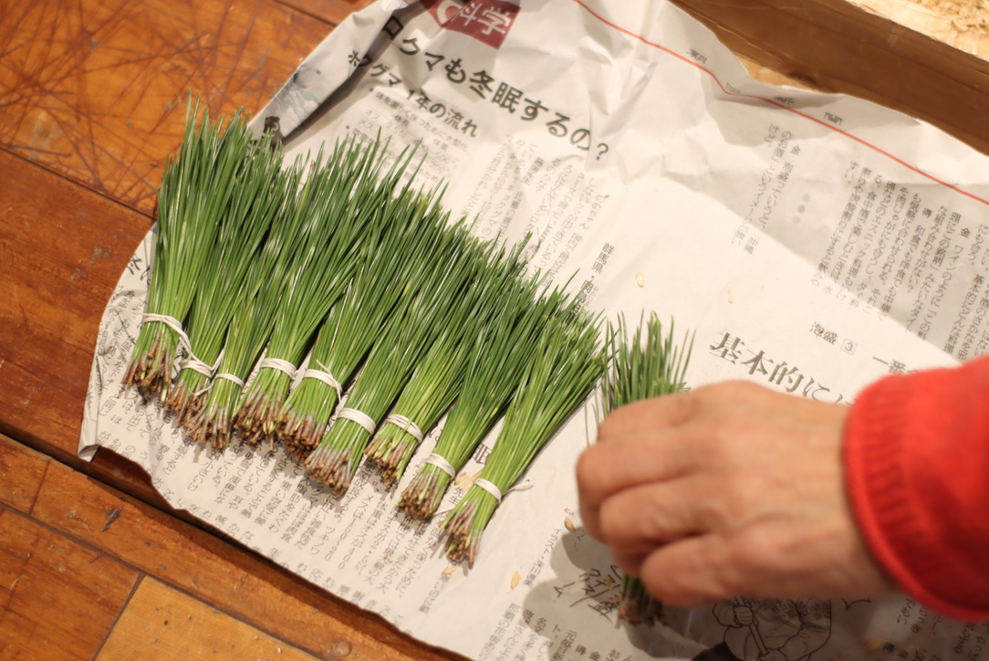 稲の苗に見立てて縛ってみる。
