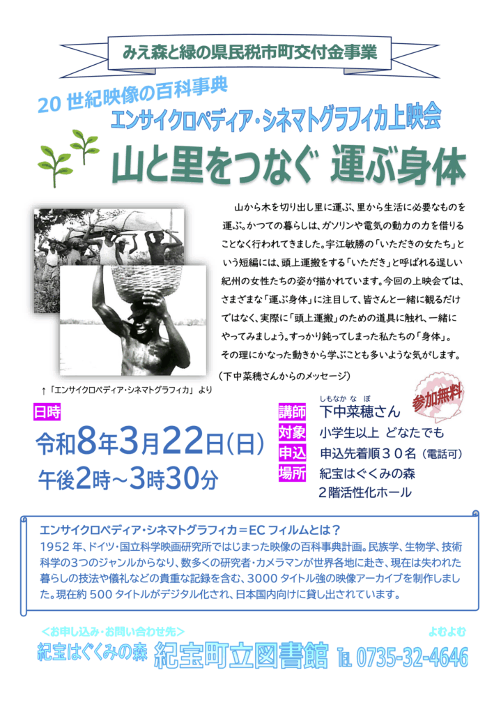来る 2026年3月22日(日) に、三重・紀宝はぐくみの森で「背守り」のワークショップと「ECフィルム」の上映会が開催されます。